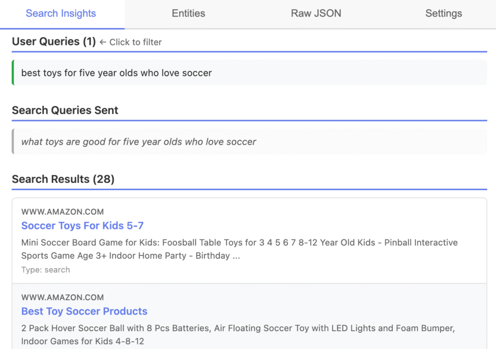 My initial prompt was, “best toys for five year olds who love soccer.”
